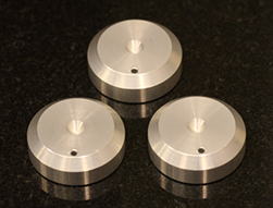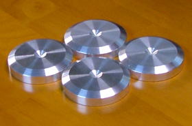 大型スパイク受け 「ALG-SR2」 直径50mm/高さ10mm 3個セット 9,000円(税込) 4個セット 11,500円(税込) アルミーゴという素材は御存知でしょうか?(思わずアミーゴと言いたくなりますが・・・) この素材もアルミ(ジュラルミン)系ですが、現時点、強度はA7075を超えアルミ系で最高の強度です。(ガンダリウムαとガンダリウムγの違い!?) 今回、サファイヤベースを開発したのですが、その際、ESD-SR1だと耐力は申し分無いのですが、見た目小さくて少々頼り無い。 そこで、大型のスパイク受けを開発しました。厚みは増やしたくないので、強度の高いアルミーゴを使用しました。 音の傾向は、ESD-SR1と同じく低域を締めるタイプですが、大型機材に使うと分解能は少し良く成っています。 重量級のアンプ、CDPや大型スピーカーのスパイク受けに最適なインシュレーターです。 |