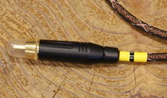 「大地 ver2.0」(だいち) スピーカーケーブル 1.5m/pair 21,000円(税込) 2.5m/pair 31,000円(税込) *上記以外の長さも承ります。 1.5m/pair以上の長さで 50cm/pair増し 5,000円(税込) 前回の大地の線材がなくなりましたので新しい線材使用しました。前作と同じくKapton銀メッキ銅線です。 前作と同じシースを使用しますので見た目は変わりません。 音質傾向も前作とほぼ同じで、若干音のヌケが良くなった印象です。 1.高信頼性MILスペックのカプトン被覆高純度銅ツイスト線をダブルで使用。 線材にストレスをかけないようにツイストしています。 2.必要最小限の締め付けによる開放的な音を追求し、固定用の熱収縮チューブを 可能な限り避けるとともに、ジャケットには軽量で絶縁性の優れた ガラスチューブを使用、見た目も綺麗です。 3.最小限の色付けを追求し、導体端部については、これまでの使用実績のある 銀入り半田でメッキ処理。 |