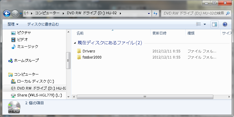 表示されない場合はコンピューターをダブルクリックしてDVD RWドライブ(光学ドライブ)を