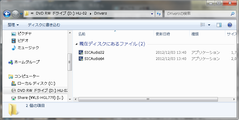 32bitのOSをお使いの場合は SICAudio32 を選択してください。