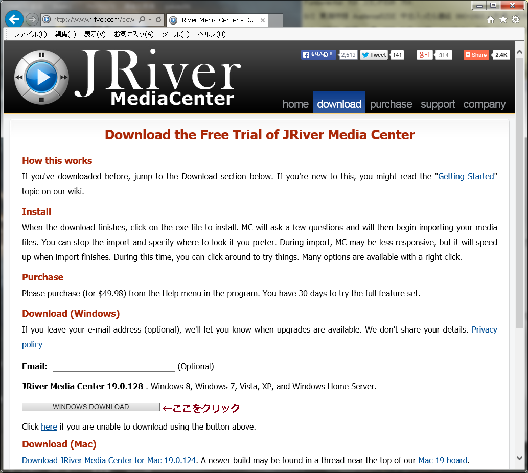 ここでは JRiver という再生ソフトをインストールしますが、このソフトは約5,000円の