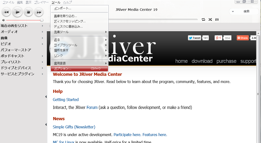 JRiverのメリットは他にもございまして、完全な日本語化が可能です。
